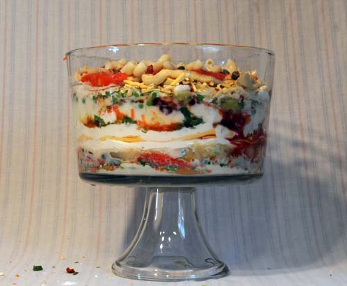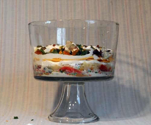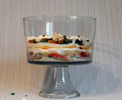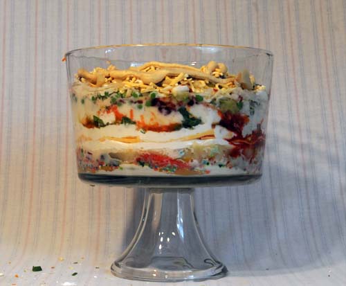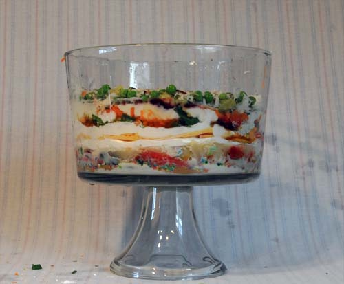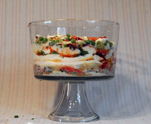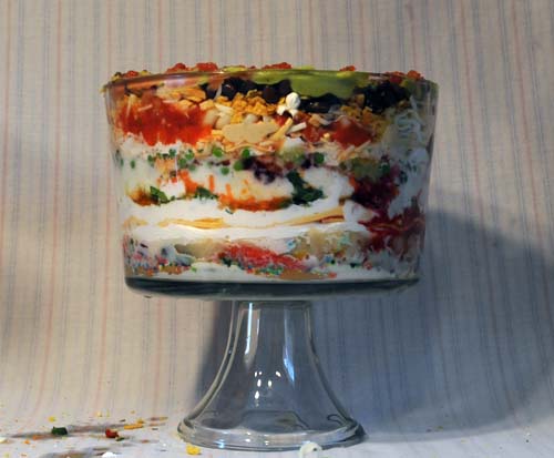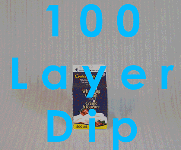 On April 28th, 2012, I assembled a 100 layer dip. I had been brainstorming the layers for over a year using this personal blog, initially inspired by the wonderful '7 layer dip'. The dip was served at 2PM and mostly consumed by 5PM by party goers who brought their own chips, pita and baguette. In the spirit of the internet, I have made this table of photos and accompanying animated gifs that require patience to load.
